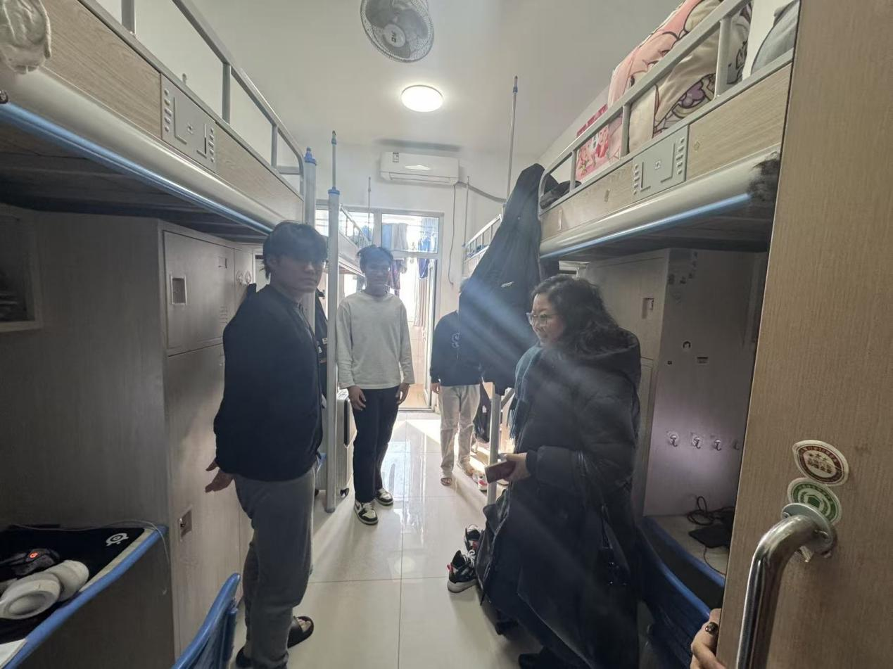 会前,王敬深入员工宿舍,亲切看望在校员工,重点走访了省外员工寝室,细致询问同学们在校期间的生活适应情况、期末备考状态以及返乡安排,叮嘱大家注意防寒保暖,做好离校返乡安全。