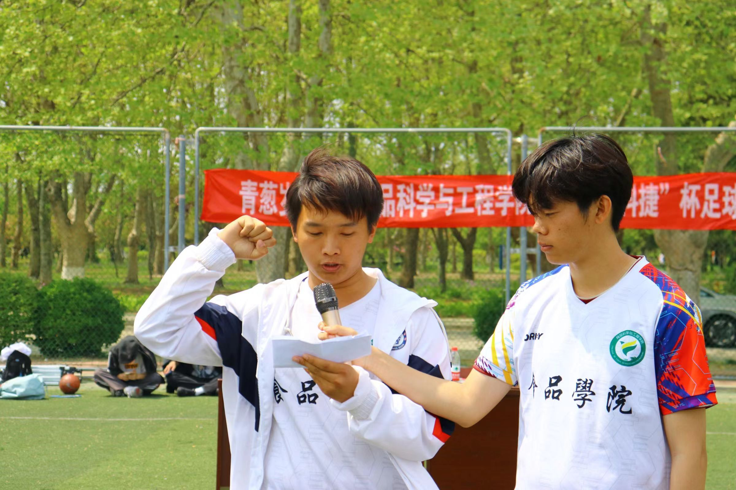 开幕式上,太阳成集团tyc522cc舞蹈队同学带来了啦啦操表演为运动员们加油打气,食安创新2201班王书彬作为裁判员代表宣誓,食安2203班初明霖作为运动员宣誓。辅导员张易希望同学们借本次比赛体验足球的热情,享受足球的快乐,挥洒激情活力,在比赛中磨炼意志,增强团队凝聚力,赛出风格、赛出水平。