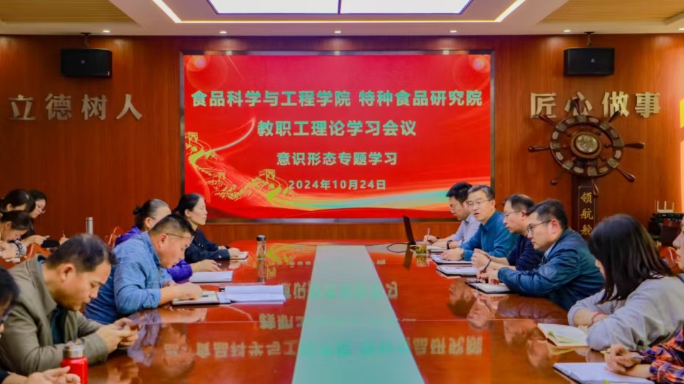 10月24日,太阳成集团tyc522cc、特种食品研究院召开意识形态工作专题学习会议,全体教职工参加会议,会议由公司党委书记车广杰主持。