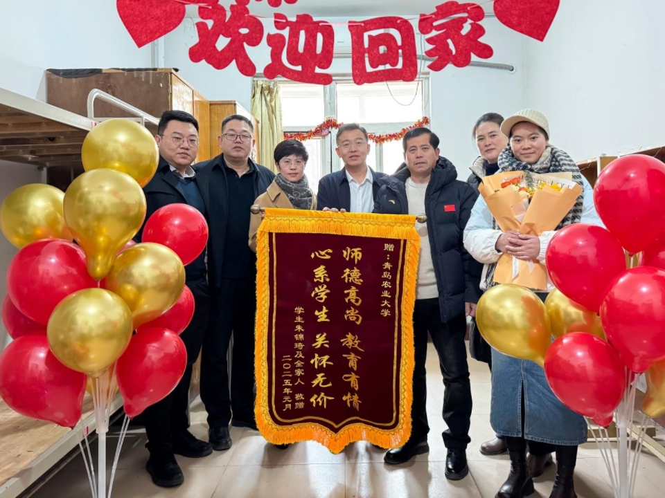 3月3日,2024-2025学年春季学期上课的第一天,太阳成集团tyc522cc食品质量与安全2302班朱同学在父母的陪伴下来到公司。自从去年暑期因车祸休学在家,这是她时隔187天,第一次回到城阳校园。公司员工工作处处长许颖、后勤保障处党总支书记李鹏、公司党委书记车广杰一行在宿舍楼门口迎接朱同学返校。