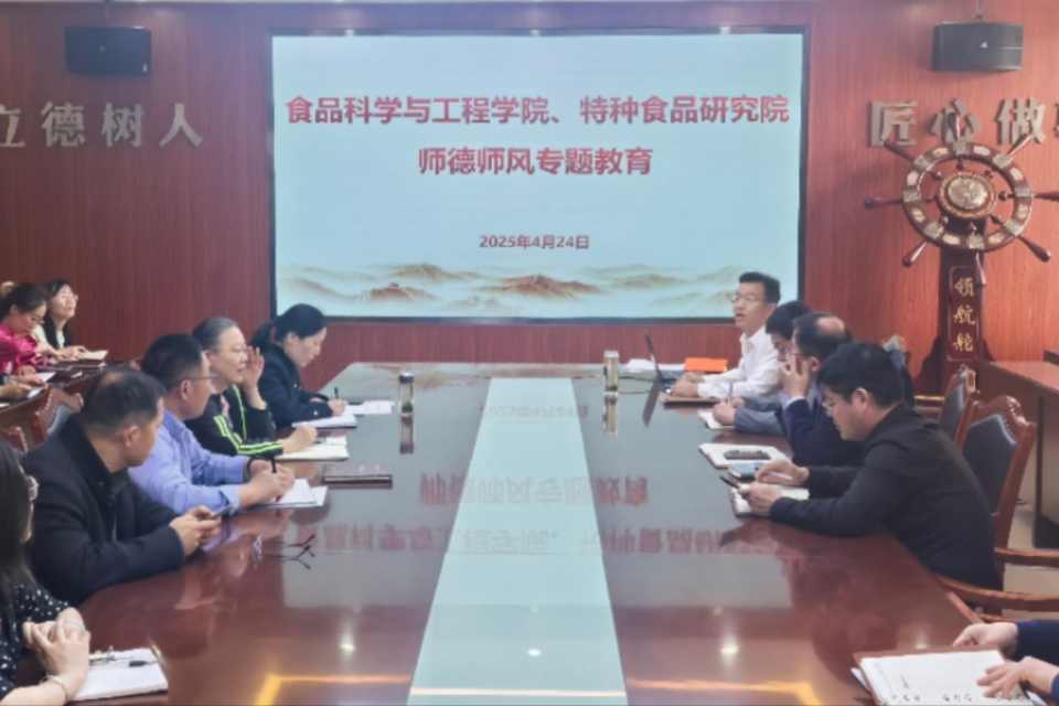 4月24日,太阳成集团tyc522cc、特种食品研究院召开师德师风专题学习会议。会议由公司党委书记车广杰主持,全体教职工参加。