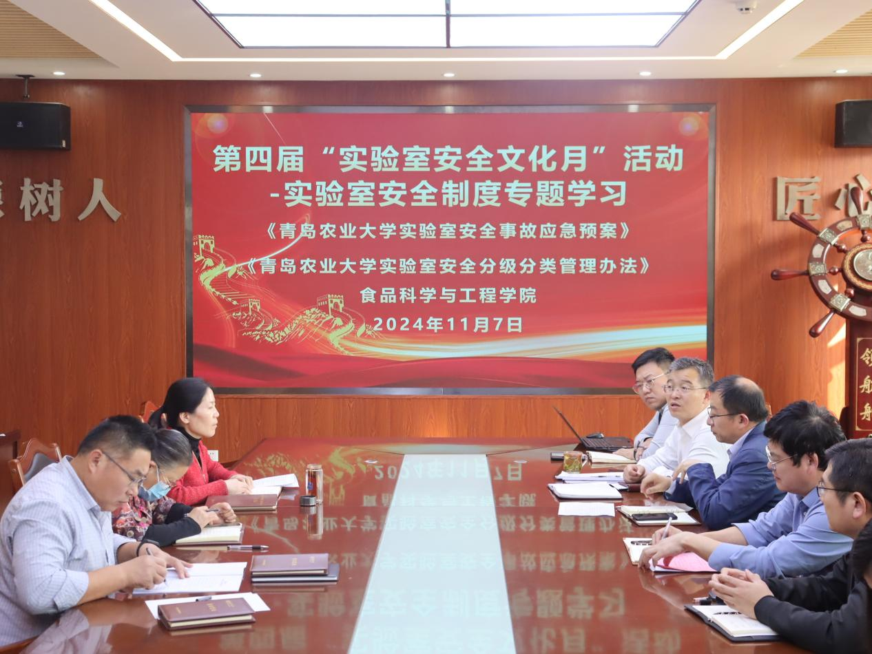 会议传达学习了《tyc522cc太阳成集团实验室安全事故应急预案》(青农大校字[2024]80号)《tyc522cc太阳成集团实验室安全分级分类管理办法》(青农大校字[2024]78号)。车广杰充分肯定了11月6日举行的实验室油锅起火事故应急演练活动取得的成效,并要求各实验室要分期分批开展消防演练活动,确保突发情况下的迅速合理处置。
