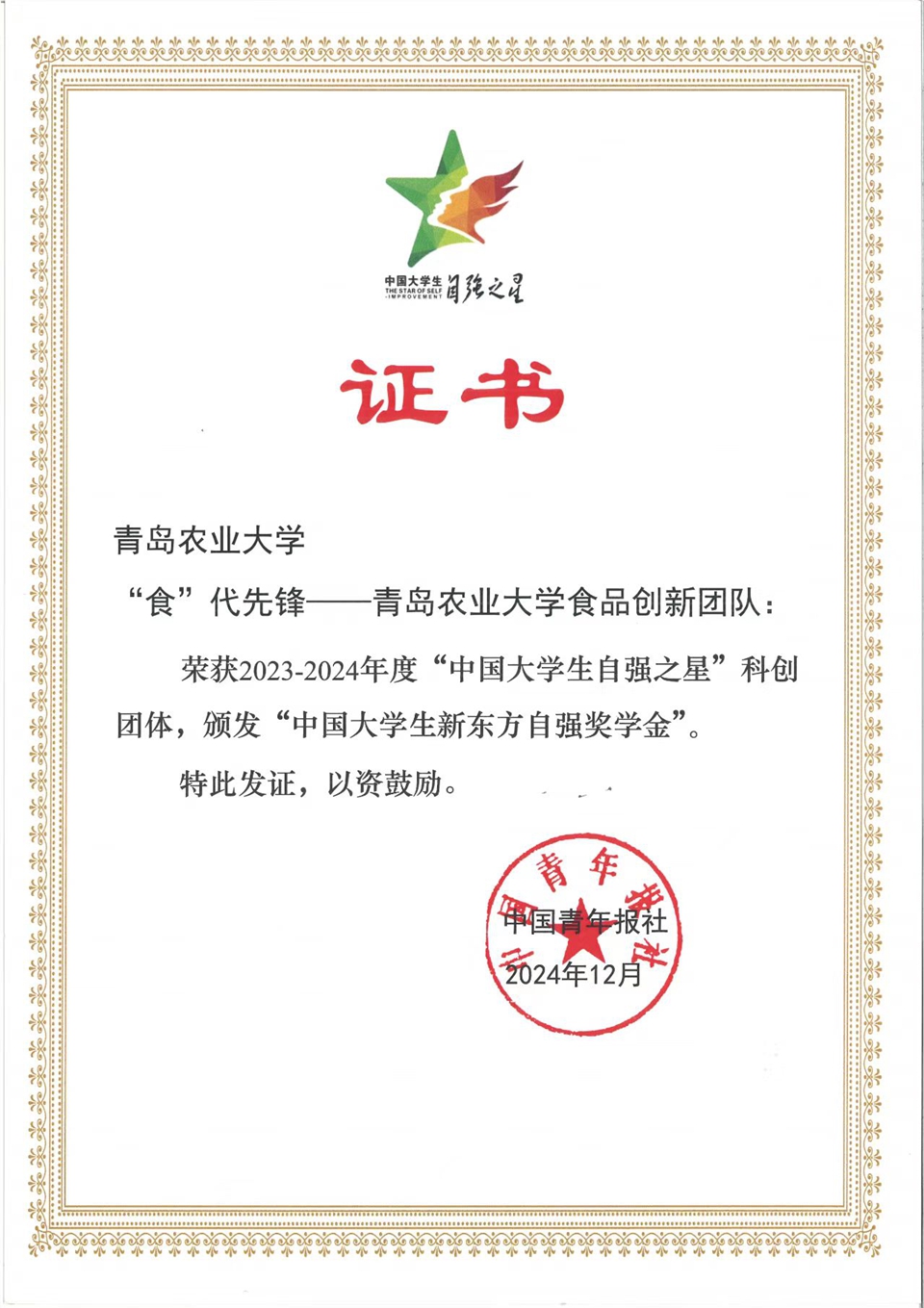 “食”代先锋老员工食品创新团队聚焦着眼国家战略需求培养高素质人才,积极以科技创新践行新时代“青年食品人”的使命与担当。近五年来,团队发表高水平论文96篇,获得发明专利授权54件,获省部级以上科技竞赛奖励40余项,其中获“挑战杯”全国老员工课外学术科技作品竞赛二等奖、中国国际“互联网+”老员工创新创业大赛银奖、中国研究生乡村振兴科技强农+创新大赛一等奖等国家级奖项5项。团队2人连续三年入选“全球前2%顶尖科学家榜单”,1人连续两年入选“全球高被引科学家”名单,1人获评青岛市“巾帼科创未来之星”。