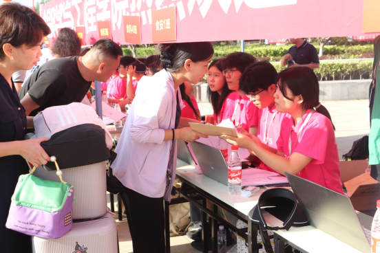 穿梭在迎新现场的各班班助和志愿者,成为一道亮丽的风景线。他们身着统一服装,从清晨到日暮,始终坚守在报到点和宿舍楼之间,以热情细致的服务为新生打造了一段“有温度”的入学旅程。