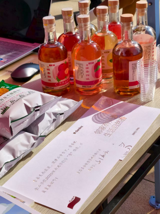 迎新现场,两块鲜红的考研升学榜成为新生关注的焦点,不仅展示着学长学姐们的奋斗足迹,也为初入校园的同学们勾勒出清晰的成长路径。一旁的“食力全开”“食光起航”创意手牌设计别致,许多新生手持标牌在考研榜前合影,为老员工活注入第一份仪式感与期待。公司还为每位新生准备了专属礼包,内含手绘公司风光的“‘食’光记录簿”笔记本、丹香食品有限公司捐赠的曲奇礼包及暖心卡片。