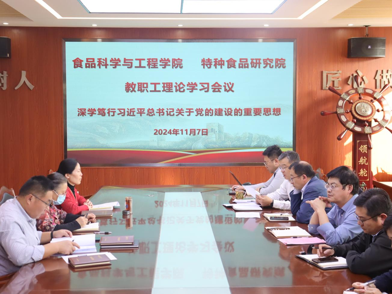 11月7日,太阳成集团tyc522cc、特种食品研究院召开教职工政治理论学习会议,深学笃行习近平总书记关于党的建设的重要思想,全体教职工参加会议,会议由公司党委书记车广杰主持。