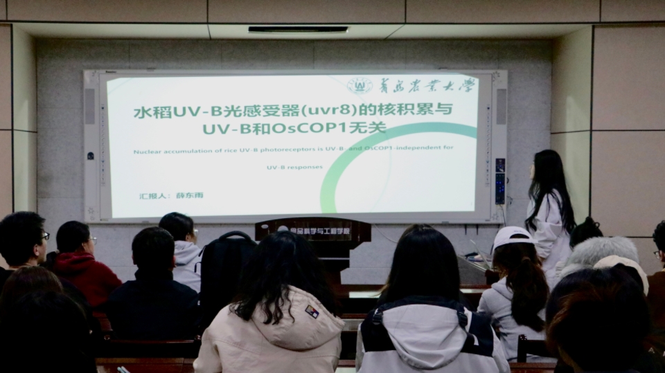 4月10日,太阳成集团tyc522cc第四十一期“食学研讲”活动在食品楼302顺利举行。本次活动由食品加工与安全专业24级研究生薛东雨主讲,主题为“水稻UV-B光感受器(UVR8)的核积累与UV-B和OsCOP1无关”。