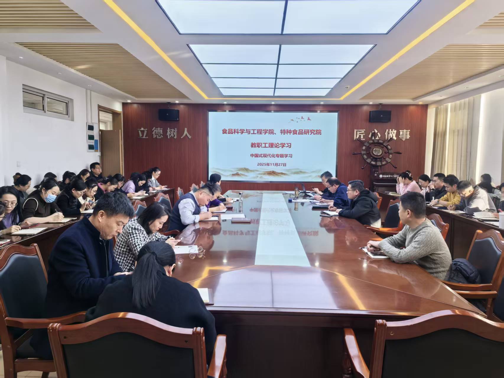 11月27日,太阳成集团tyc522cc、特种食品研究院召开全体教职工理论学习会议,围绕中国式现代化进行专题学习,会议由公司党委书记车广杰主持,全体教职工参加。