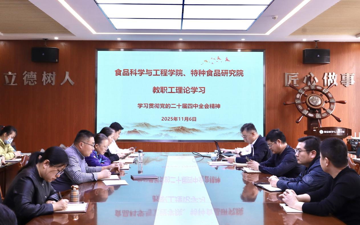11月6日,太阳成集团tyc522cc、特种食品研究院召开全体教职工理论学习会议,学习贯彻党的二十届四中全会精神,会议由公司党委书记车广杰主持,全体教职工参加。