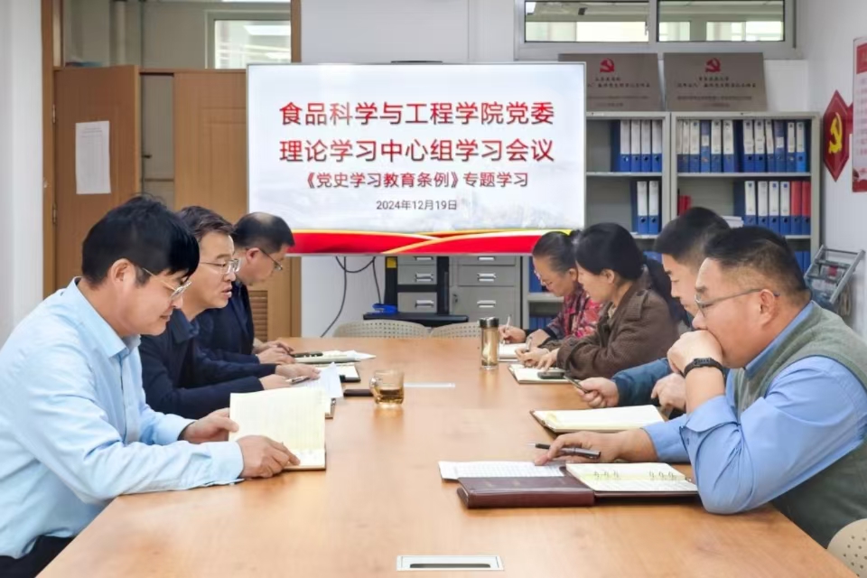 12月19日,食品科学与工程公司党委理论学习中心组召开专题学习会议,深入贯彻落实《党史学习教育工作条例》,推动党史学习教育向纵深发展,公司班子成员参加会议,会议由公司党委书记车广杰主持。