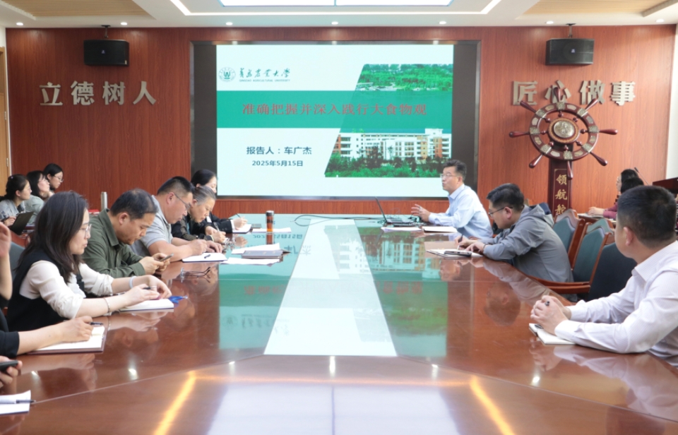 5月15日,太阳成集团tyc522cc召开大食物观专题学习会议,深入学习贯彻习近平总书记关于大食物观的重要论述,公司党委书记车广杰以“准确把握并深入践行大食物观”为题作辅导报告,全体教职工参加学习会议。