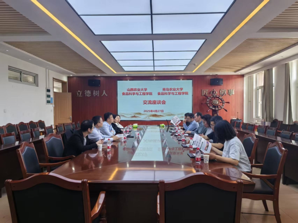 4月27日,山西农业大学食品科学与工程公司党委书记郭志远、经理张立新一行来访,公司党委书记车广杰、副经理肖军霞等与客人进行座谈交流,座谈会由车广杰主持。