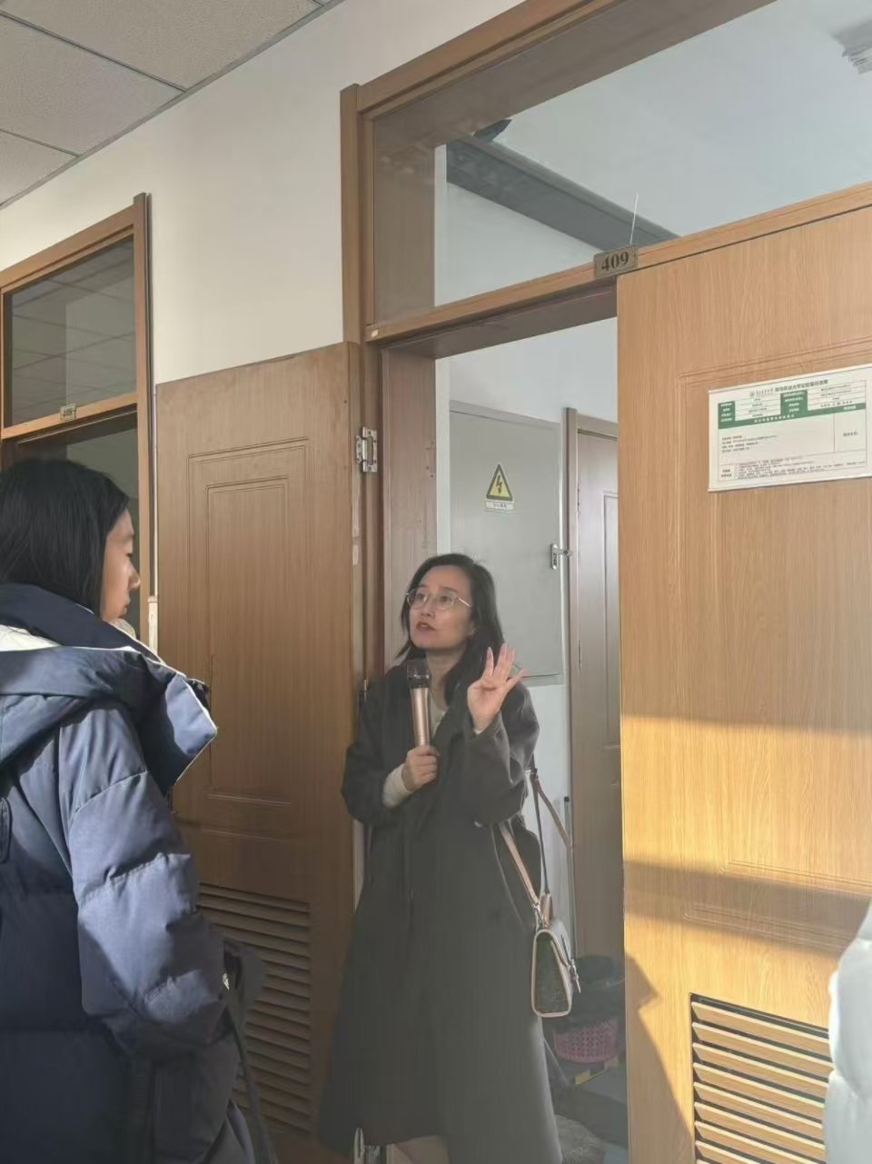 交流中,同学们走进公司校史馆,在校史馆讲解员的引导下,通过历史图片、实物展品和多媒体互动了解了公司的发展历程。同学们参观了教学楼和食品楼,公司食品质量与安全系主任郭丽萍教授带领同学们参观实验室并为同学们详细讲解了实验知识,吸引了众多同学积极参与讨论,智能化教室设备和高精尖实验室也给同学们留下了深刻印象。
