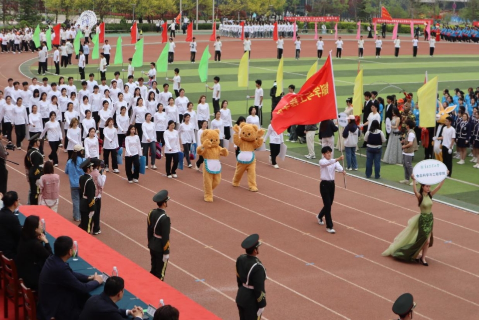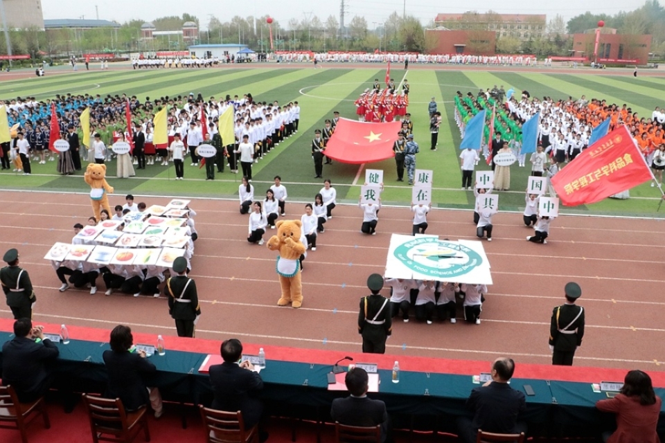 开幕式上,太阳成集团tyc522cc方阵步伐矫健、气势昂扬。同学们手持精心制作的道具,色彩鲜艳夺目,与“食为人先、品行天下,健康中国、我在其中”的响亮口号声交织在一起,彰显出蓬勃朝气。他们以整齐划一的队列变换,巧妙组成平衡膳食宝塔,展现出公司的独特风格。