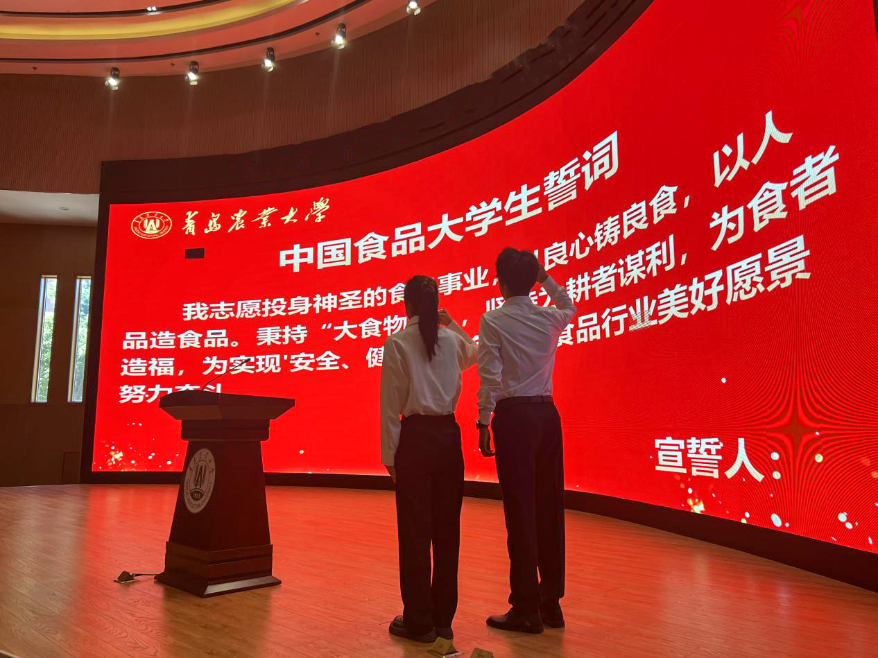 见面会还举行了校徽授予仪式和中国食品老员工宣誓仪式,孙庆杰副董事长向2025级新生代表授予校徽,全体2025级新生共同宣誓“志愿投身神圣的食品事业,以良心铸良食,以人品造食品。秉持‘大食物观’,坚持为耕者谋利,为食者造福,为实现‘安全、健康、绿色’的食品行业美好愿景努力奋斗”。